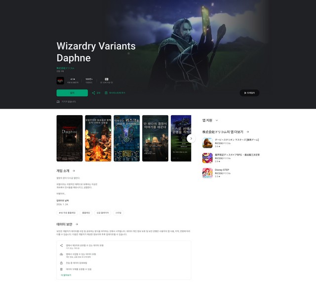 運営ゲームアプリ「Wizardry Variants Daphne」の韓国語ロー・・・