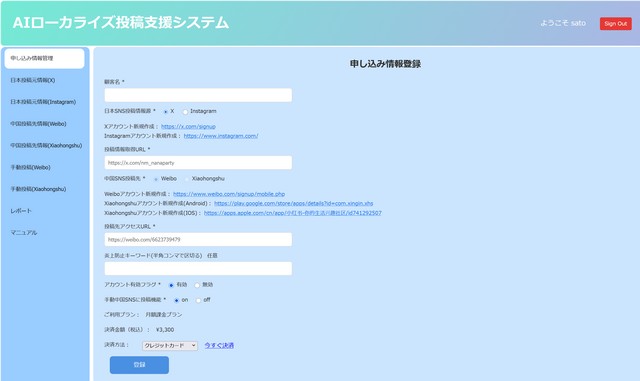 中国SNS向けに特化したAI翻訳・ローカライズ自動投稿システム開発事業
