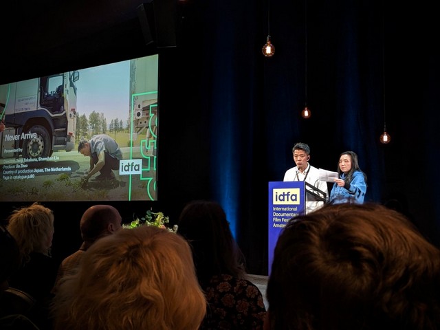本事業は2025年11月17日〜19日オランダ・アムステルダムで開催された国際ドキュメンタリー映画祭IDFAにおいて、企画中のドキュメンタリー作品「Never Arrive」をピッチフォーラムで発表し、海外展開の促進を目的として実施した。現地のピッチ参加、19を超える海外プロデューサーや出資者、配給関係者との商談・ネットワーキングを行い、国際共同制作や配信展開に向けた具体的な協議を進めた。